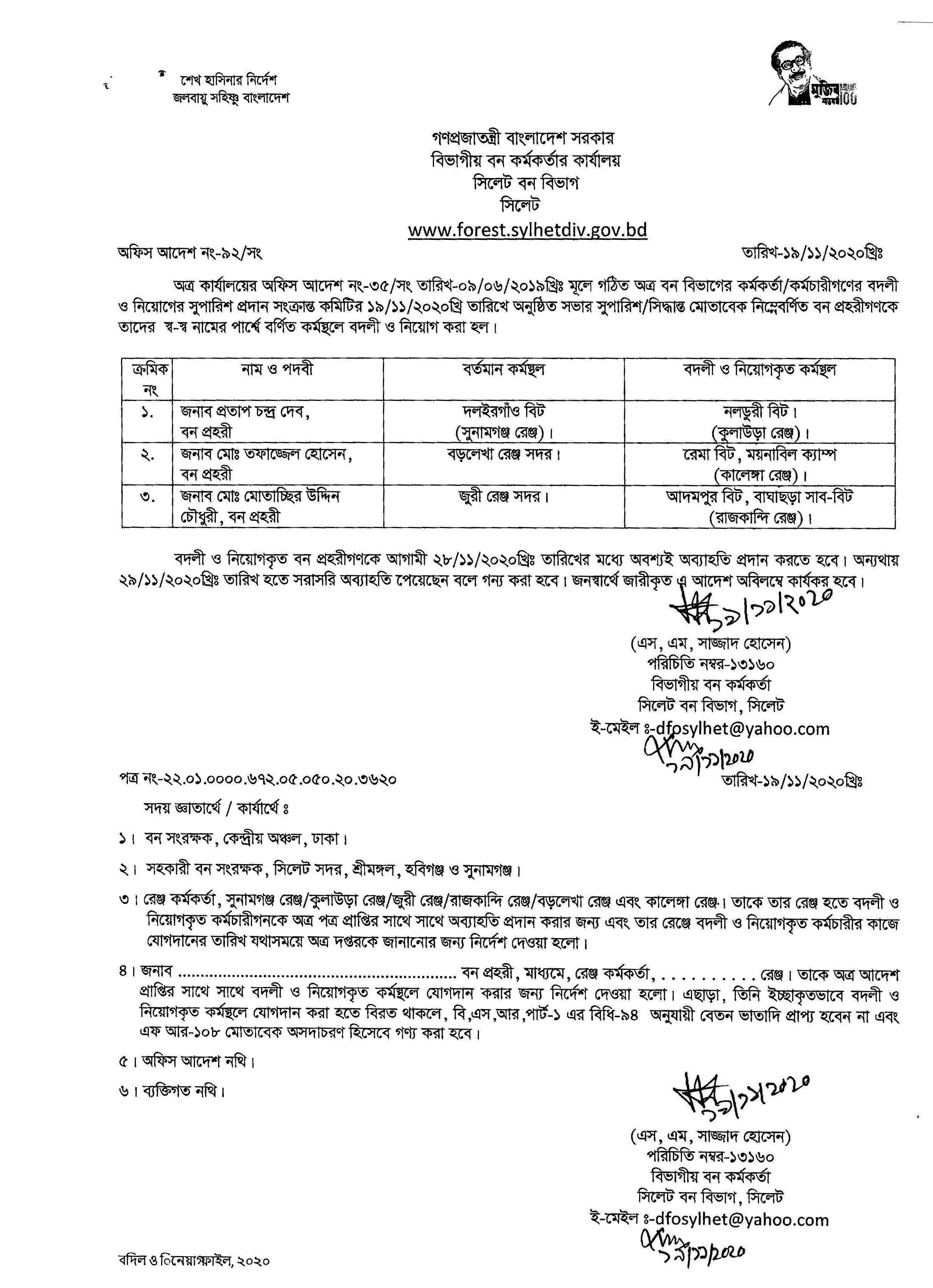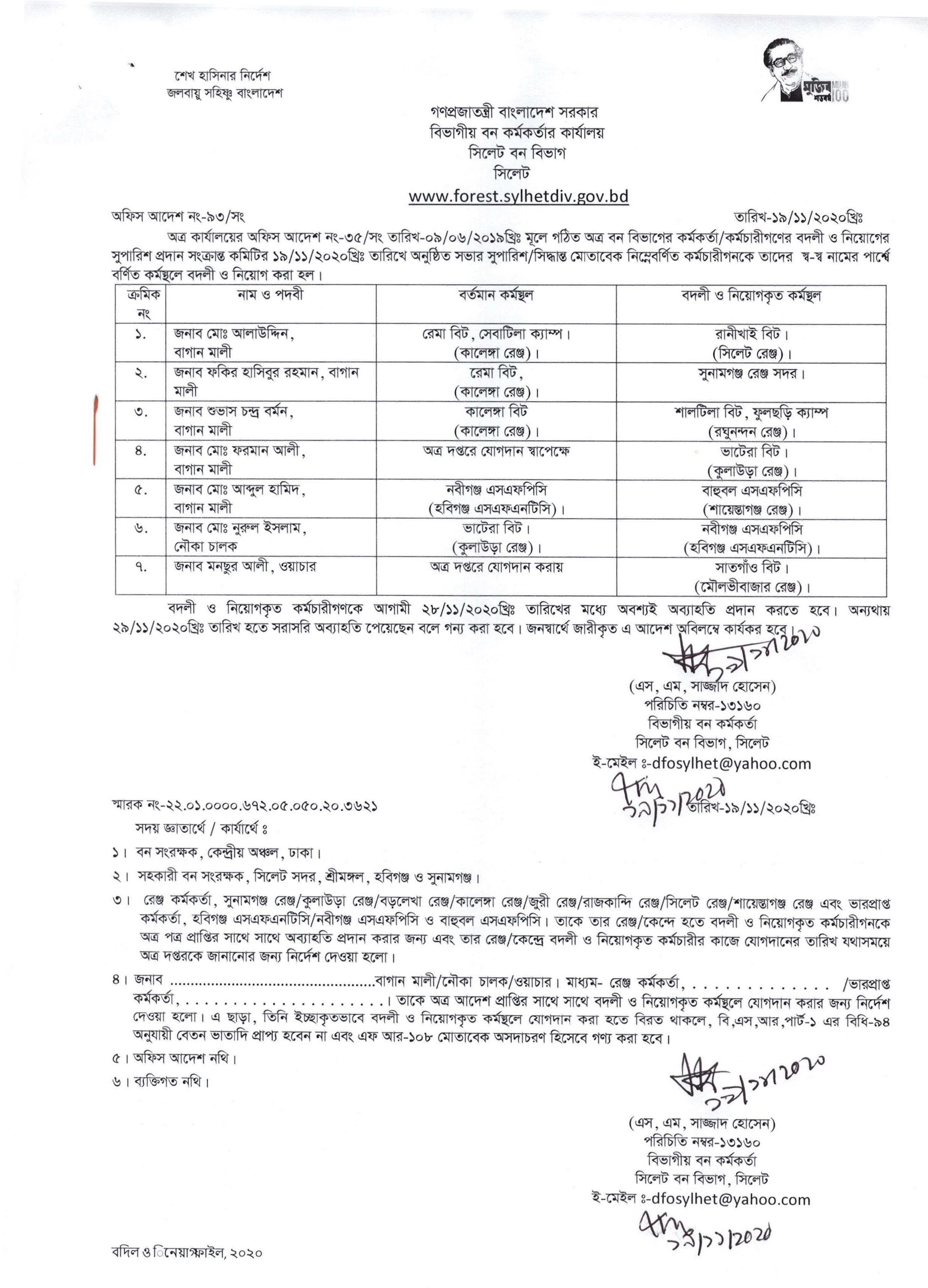বাগান মালী ও নৌকা চালকগণের বদলী নিয়োগ আদেশ।