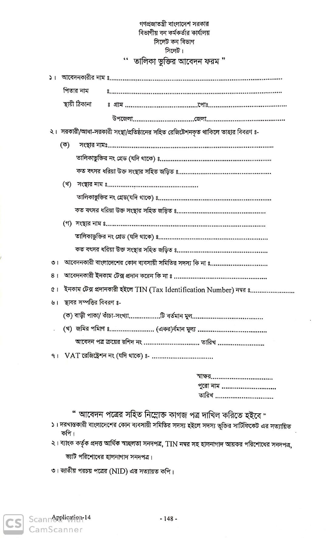 তালিকা ভূক্তির আবেদন ফরম