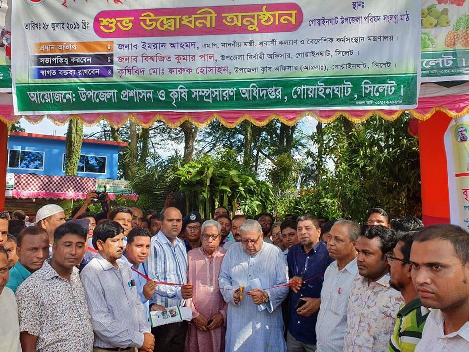 গত ২৮/০৭/২০১৯ খ্রিঃ তারিখ গোয়াইনঘাট উপজেলায় ৬দিন ব্যাপী কৃষি প্রযুক্তি ও ফলদ বৃক্ষমেলা-২০১৯ এর উদ্বোধন, চারা বিতরণ ও বন বিভাগের স্টল পরিদর্শন করেন মাননীয় মন্ত্রী, প্রবাসি কল্যান ও বৈদেশিক কর্মসংস্থান মন্ত্রণালয় জনাব ইমরান আহমদ এম,পি মহোদয়।