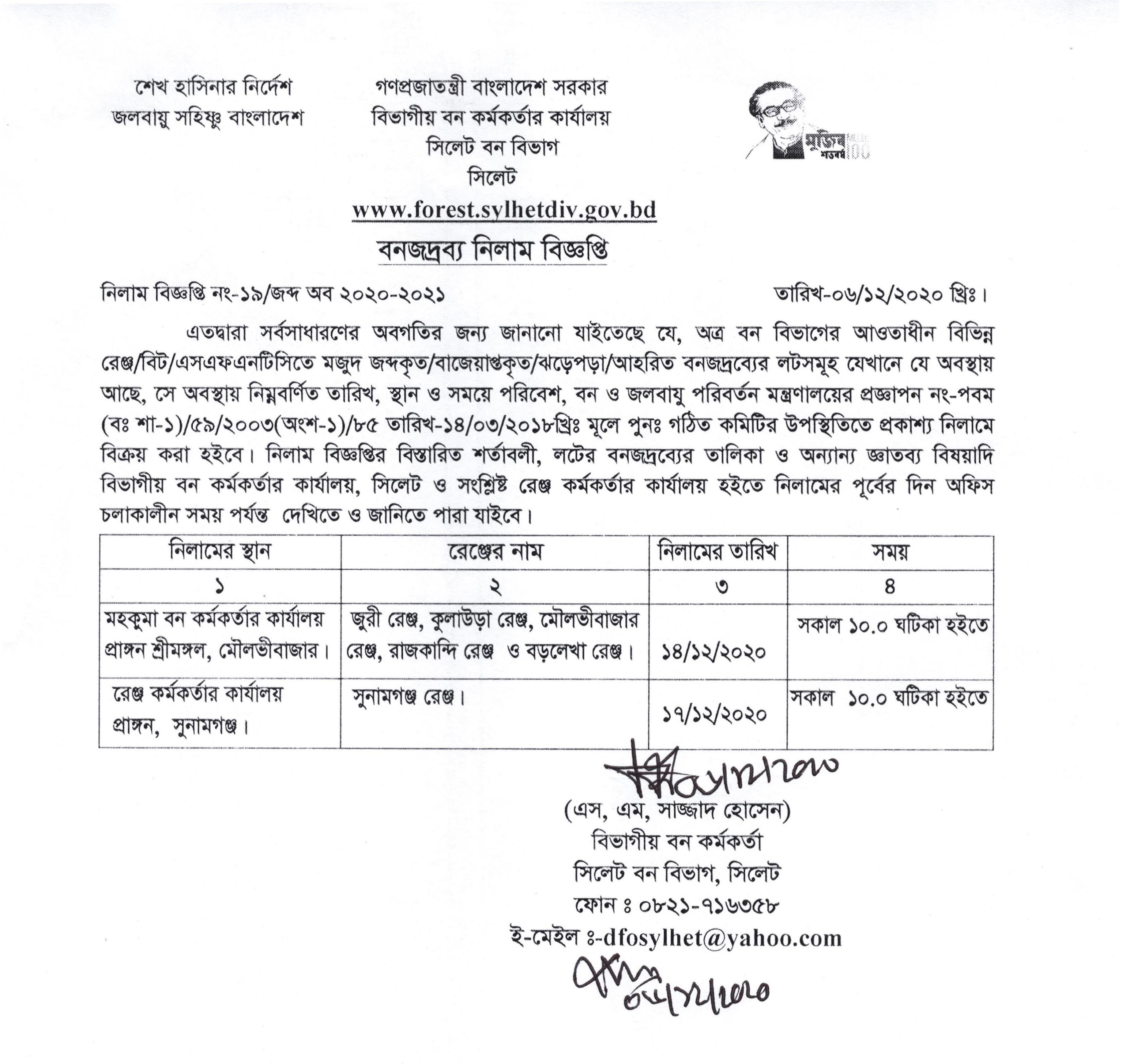 বনজদ্রব্য নিলাম বিজ্ঞপ্তি