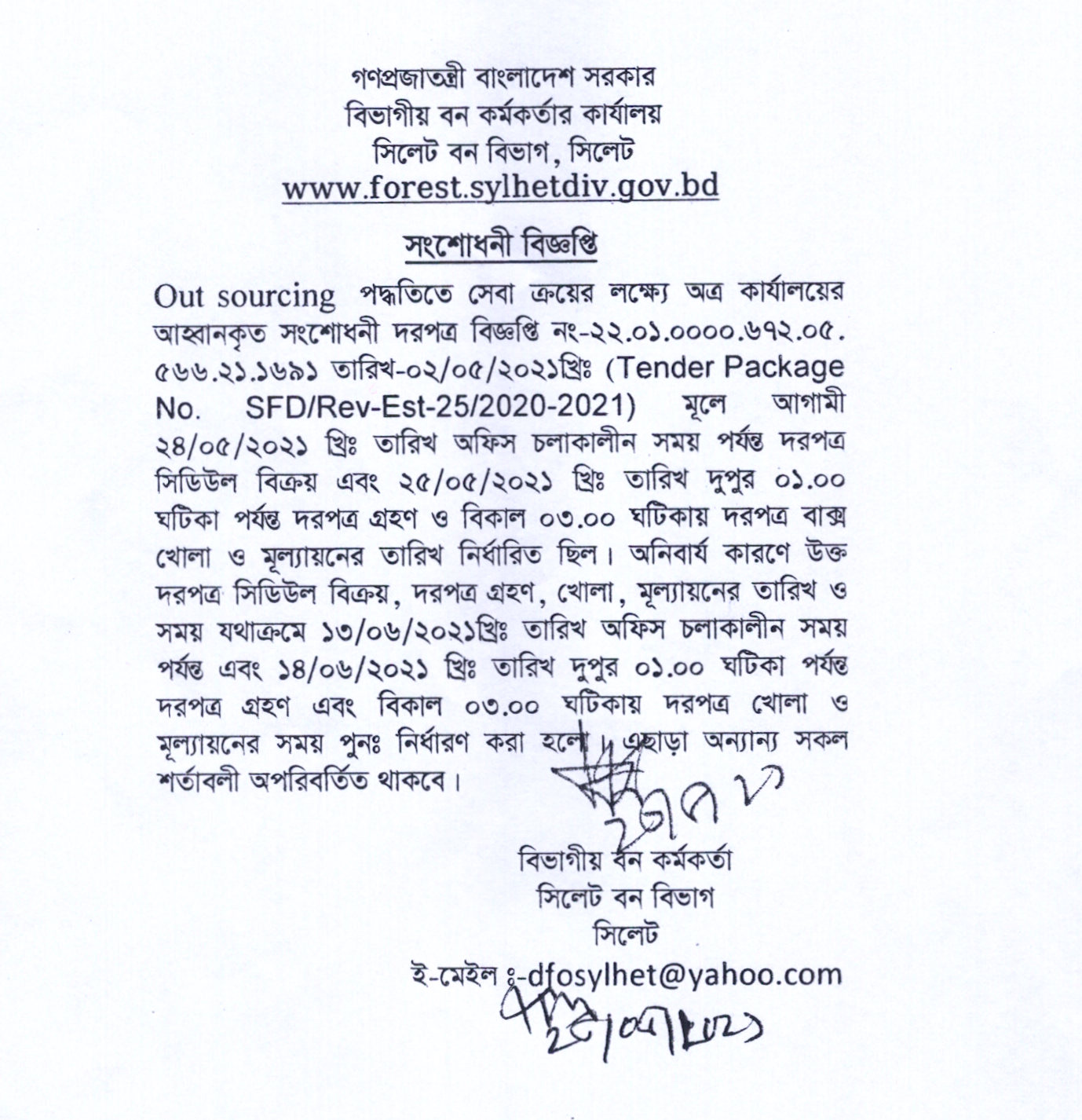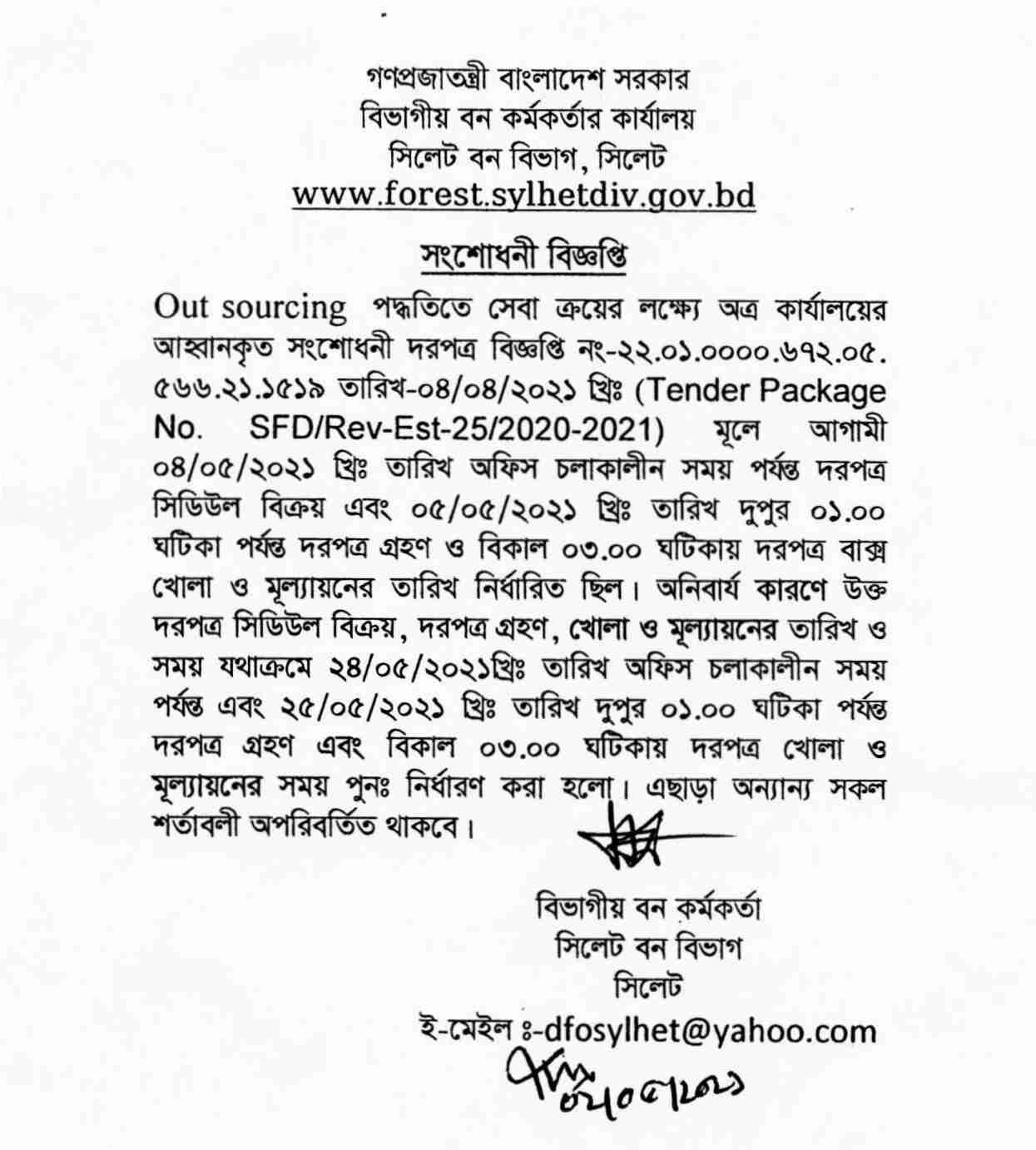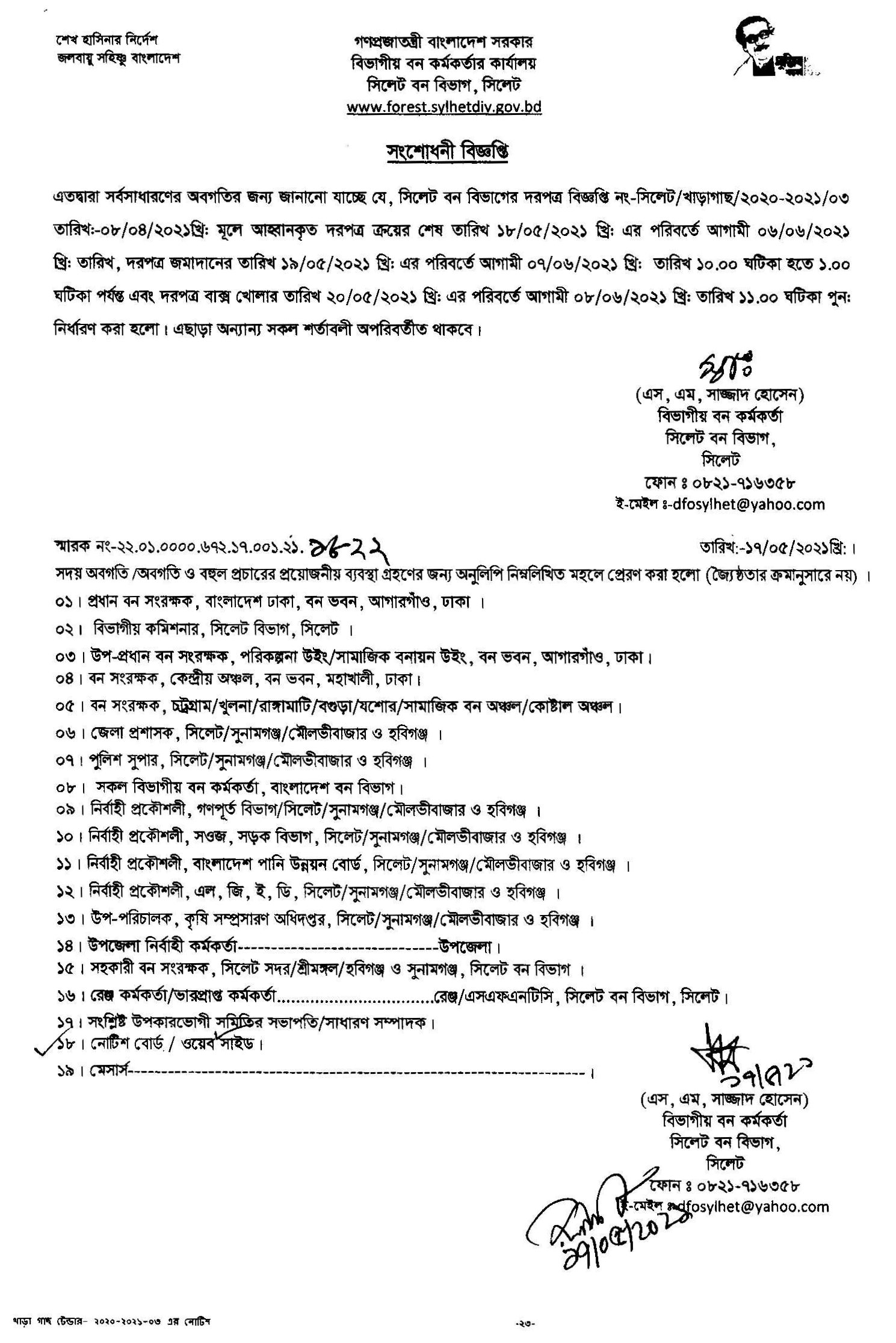 সিলেট বন বিভাগের ২০২১-২০২২আর্থিক সালে মূর্তা মহাল বিক্রয়ের দরপত্র বিজ্ঞপ্তি